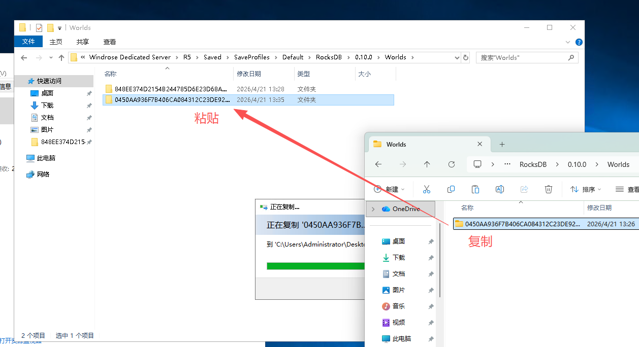 根据以下顺序打开你的存档文件夹 Windrose Dedicated Server