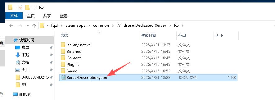 在R5文件夹内会有一个【ServerDescription.json】文件